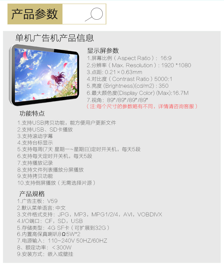 | 支持USB、SD卡播放 | |