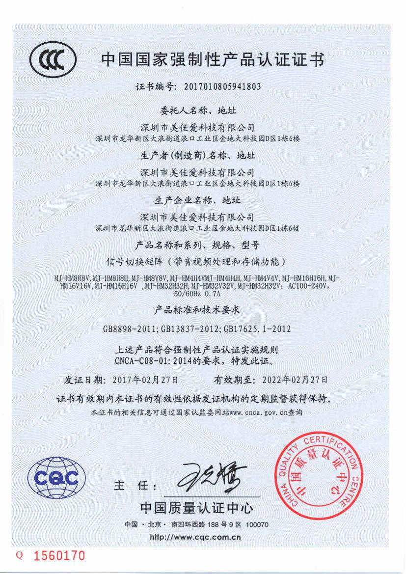 矩陣切換器證書