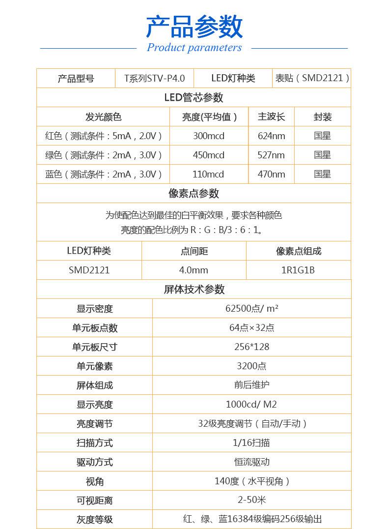 LED大屏幕小間距拼接全彩高清屏 背光源:LED背光 點間距:4.0 mm LED燈種類:SMD2121 顯示密度:62500點/㎡