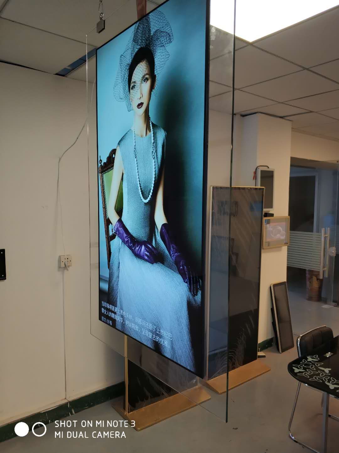 目前很科技館會選擇這種OLED超薄雙面顯示!他有足夠的吸引力吸引人的眼球!它的做工就是在于一片玻璃的兩面貼上屏幕,屏幕的厚度僅兩毫米!加上玻璃的厚度總計也就14毫米左右!所以這個屏幕薄的人難以置信!